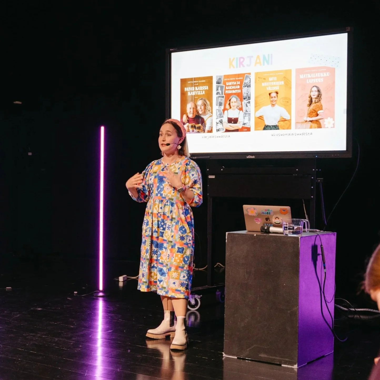 Olen Lotta-Sofia Saahko – saatat tuntea minut “Lotan ja papan” Lottana tai Unohtumattomien TV-juontajana. Teen videoita someen, ja sen lisäksi olen tieto- ja lastenkirjailija sekä puhun ja luennoin erilaisissa tapahtumissa.